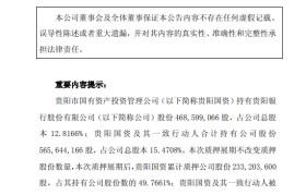3月13日金融一线消息,贵阳银行发布公告称,贵阳市国有资产投资管理公司将其持有的1.4亿股办理质...
