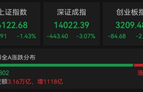 今日A股盘中跳水,沪指收跌1.43%,深证成指跌3.07%,创业板指跌2.57%。沪深两市成交额...
