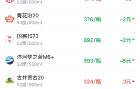 新浪财经“酒价内参”过去24小时收集的数据显示,中国白酒市场十大单品的终端零售总均价在2月28日...