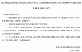 2月25日金融一线消息,国家金融监督管理总局山西监管局发布批复,核准彭贝山西金融租赁有限公司副总...