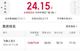 据猫眼专业版数据,2026年春节档档期总票房(含预售)破24亿,《飞驰人生3》《惊蛰无声》《熊出没・...