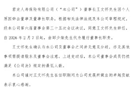 2月14日金融一线消息,近日,君龙人寿发布董事长变更公告,董事长王文怀因个人原因辞去董事及董事长...