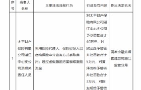 2月12日金融一线消息,国家金融监督管理总局湛江监管分局行政处罚信息公示表显示,太平财产保险有限...