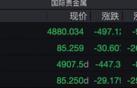 贵金属出现史诗级暴跌。 Wind数据显示,截至收盘,现货黄金下跌9.25%,报4880.03...