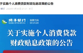1月30日金融一线消息,瑞丰银行发布关于实施个人消费贷款财政贴息政策的公告。为贯彻落实中央关于提...