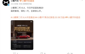 凤凰网科技讯 3月19日,小鹏汽车宣布第二代VLA开启首批推送,覆盖小鹏P7 Ultra/G7 Ul...
