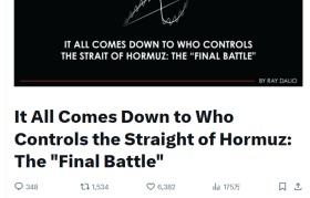 近日,桥水创始人达利欧在社交平台上发布长文称,美国和伊朗当前在霍尔木兹海峡的争夺将是一场“终极决...
