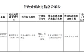 3月6日金融一线消息,据中国人民银行广西壮族自治区分行行政处罚决定信息公示表显示,中国农业发展银...