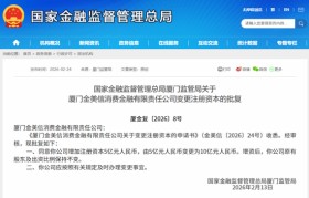 来源:零壹财经 2月24日,厦门金美信消金获批变更注册资本,由5亿元增加至10亿元,增资后...