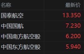 港股航空股逆势上涨,其中,国泰航空涨4%领衔,中国国航、中国南方航空、中国东方航空均涨超1%以上。消...