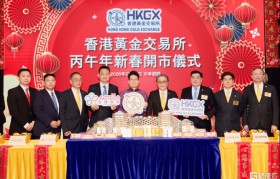 香港黄金交易所昨日举行新春开市仪式。香港财经事务及库务局副局长陈浩濂先生,JP、香港黄金交易所主席张...
