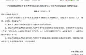 3月27日金融一线消息,宁波金融监管局发布关于宣力勇昆仑信托有限责任公司首席合规官任职资格的批复...