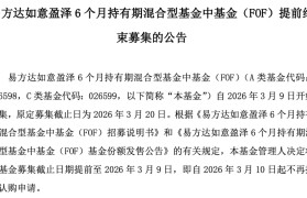 又一只FOF基金“一日售罄”。 3月10日,易方达基金公告称,旗下易方达如意盈泽6个月持有期...