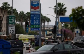 该州汽油价格已逼近每加仑 6 美元,较全国平均水平高出约 2 美元。 加州一家雪佛龙加油站...