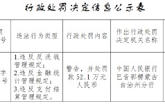 3月4日金融一线消息,据中国人民银行巴音郭楞蒙古自治州分行行政处罚决定信息公示表显示,新疆库尔勒...