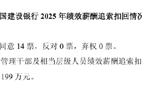 建设银行:2025年总行管理干部及相当层级人员绩效薪酬追索扣回17人次,涉及金额人民币199万元