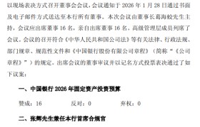 2月13日金融一线消息,中国银行今日发布董事会决议公告,会议审议通过《张辉先生兼任本行首席合规官...