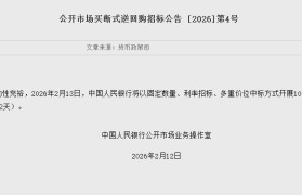 2月12日金融一线消息,为保持银行体系流动性充裕,2026年2月13日,中国人民银行将以固定数量...