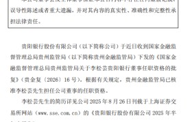 2月6日金融一线消息,贵阳银行今日发布公告称,该行于近日收到国家金融监督管理总局贵州监管局(以下...