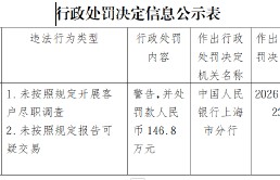 3月27日金融一线消息,中国人民银行上海分行行政处罚决定信息公示表显示,中宏人寿保险有限公司因未...