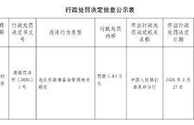 3月6日金融一线消息,据中国人民银行酒泉市分行行政处罚决定信息公示表显示,甘肃玉门农村商业银行股...
