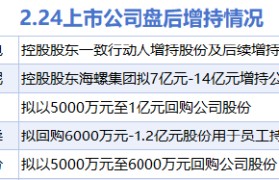 据统计,2月24日,盘后华能水电、海螺水泥、开普云、中顺洁柔、元力股份披露增持情况。包括新柴股份...
