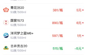 新浪财经“酒价内参”过去24小时收集的数据显示,中国白酒市场各大单品的终端零售均价在3月20日延...