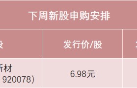 根据目前的发行安排,下周只有1只新股申购,即周一(3月9日)的北交所新股族兴新材。 族兴新材...
