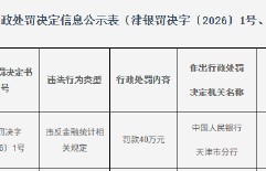 3月6日金融一线消息,据中国人民银行天津市分行行政处罚决定信息公示表显示,天津滨海扬子村镇银行股...
