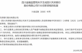 2月26日金融一线消息,四川金融监管局发布批复,核准王成四川天府银行股份有限公司行长的任职资格。...