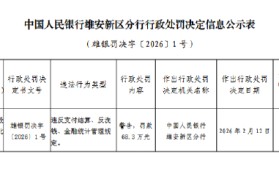 2月14日金融一线消息,中国人民银行雄安新区分行行政处罚决定信息公示表显示,中国建设银行股份有限...