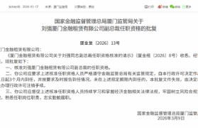 3月17日金融一线消息,国家金融监督管理总局厦门监管局发布《关于刘强厦门金融租赁有限公司副总裁任...