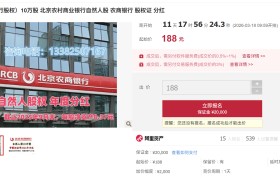 3月初,一则拍卖信息引发广泛关注:北京农商银行10万股自然人股权在阿里资产平台挂牌,起拍价仅18...