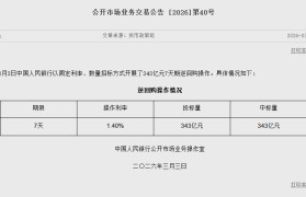 3月3日金融一线消息,据央行官网,2026年3月3日中国人民银行以固定利率、数量招标方式开展了3...