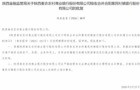 3月2日金融一线消息,陕西金融监管局发布批复,同意陕西秦农农村商业银行股份有限公司吸收合并合阳惠...