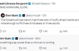 马斯克周二在X上发帖称:“Cybertruck 的后排座椅配备三组 ISOFIX 儿童安全座椅接...