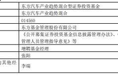 中国经济网北京2月26日讯 今日,东方基金公告,东方汽车产业趋势混合增聘张阳。张阳曾任东兴证券研究员...