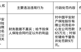 蓝鲸新闻2月9日讯,近日,茂名金融监管分局发布了一则行政处罚信息,剑指中国平安财产保险股份有限公司茂...