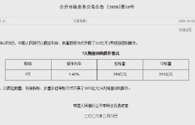 2月6日金融一线消息,央行今日开展315亿元7天逆回购操作,操作利率为1.40%。同时,以固定数...