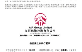2月4日金融一线消息,友邦保险发布公告称,Shulamite N K Khoo及顾敏已获委任为公...