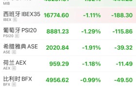 3月27日,欧洲股市集体小幅高开后跳水,截至发稿,欧洲斯托克50指数跌超1%,英国富时100指数跌0...