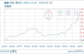 据生意社监测,醋酸03月20日最新价格3256.67元/吨,最近5天上涨7.36%,10天上涨8....