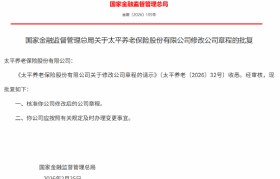 3月20日金融一线消息,国家金融监督管理总局发布批复,核准太平养老保险股份有限公司修改后的公司章...
