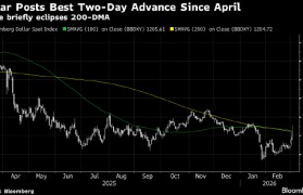 彭博美元指数连续第二天走强,两天累计上涨约1.3%,创下去年4月以来最佳两日表现,G-10货币兑...
