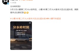 凤凰网科技讯 3月3日,小鹏汽车官方宣布,小鹏X9第二代VLA版本大定占比超8成,创版本占比新纪录。...