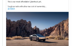 特斯拉官方账号宣布推出Cybertruck双电机全轮驱动版,售价59990美元。马斯克称该价格“...