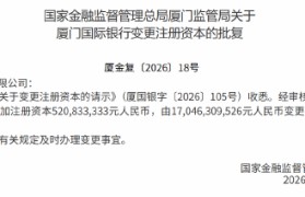 3月24日金融一线消息,国家金融监督管理总局厦门监管局发布批复,同意厦门国际银行股份有限公司增加...