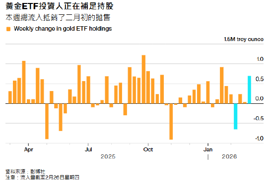 根据彭博社的数据,随着市场稳定,投资人也开始增加持有黄金支持的交易所交易基金(ETF),本周至周四的流入量超过本月初的抛售,显示市场买兴进一步回归,有望支撑黄金价格在持稳中寻求更大反弹。