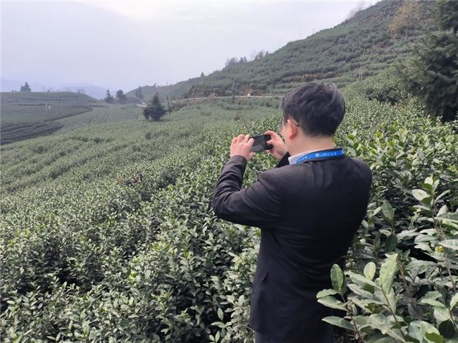 图注:公证员在小罐茶早春雀舌产地茶园进行取证