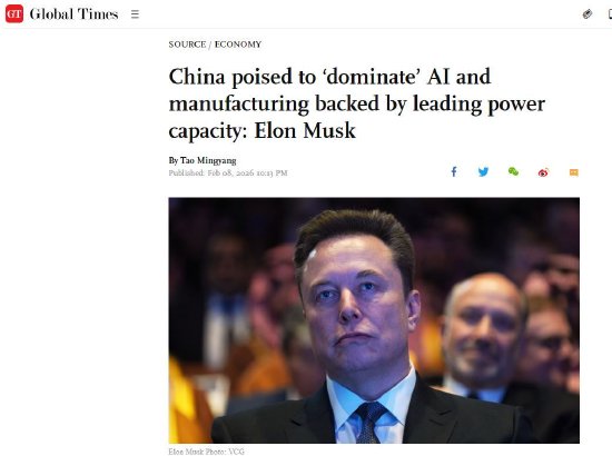 马斯克称中国有望在AI和制造业领域“完全占据主导地位”